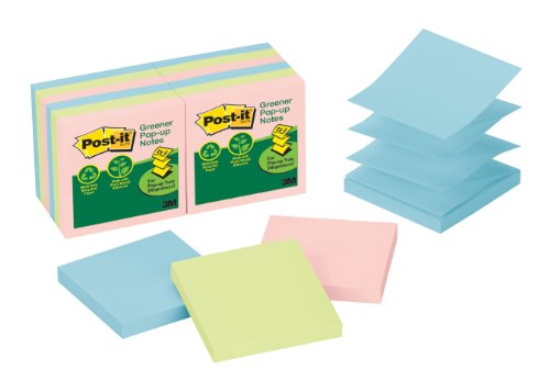 Post-it Notes, Recycled Pop-Up Refill, 3 x 3 Inches, Assorted Pastel Colors, 12 Pads per Pack (R330RP-12AP) Review