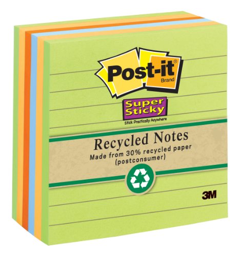 Post-it® Notes, Super Sticky Pad, 4 Inches x 4 Inches, Lined, Recycled, Assorted Natures Hues Colors, Six Pads per Pack Review