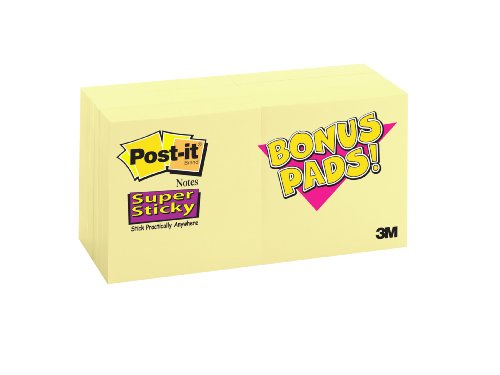 Post-it® Notes, Super Sticky Pad, 3 Inches x 3 Inches, Canary Yellow, 12 Pads per Pack Review