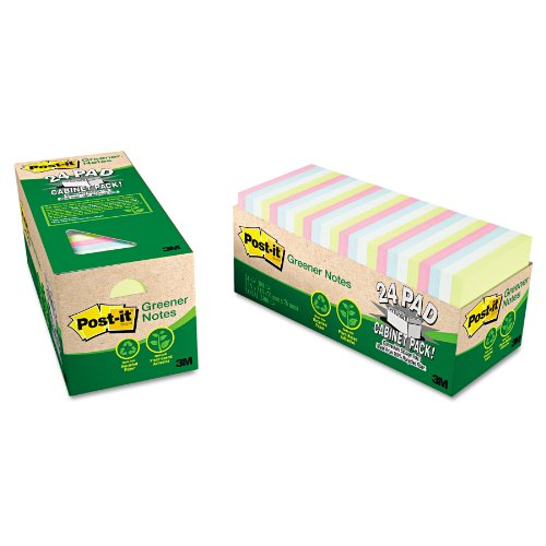 Post-it Notes, Original Pad, 3 Inches x 3 Inches, Recycled, Assorted Pastel Colors, Cabinet Pack, 75 Sheets per Pad, 24 Pads per Pack (654R-24CP-AP) Review